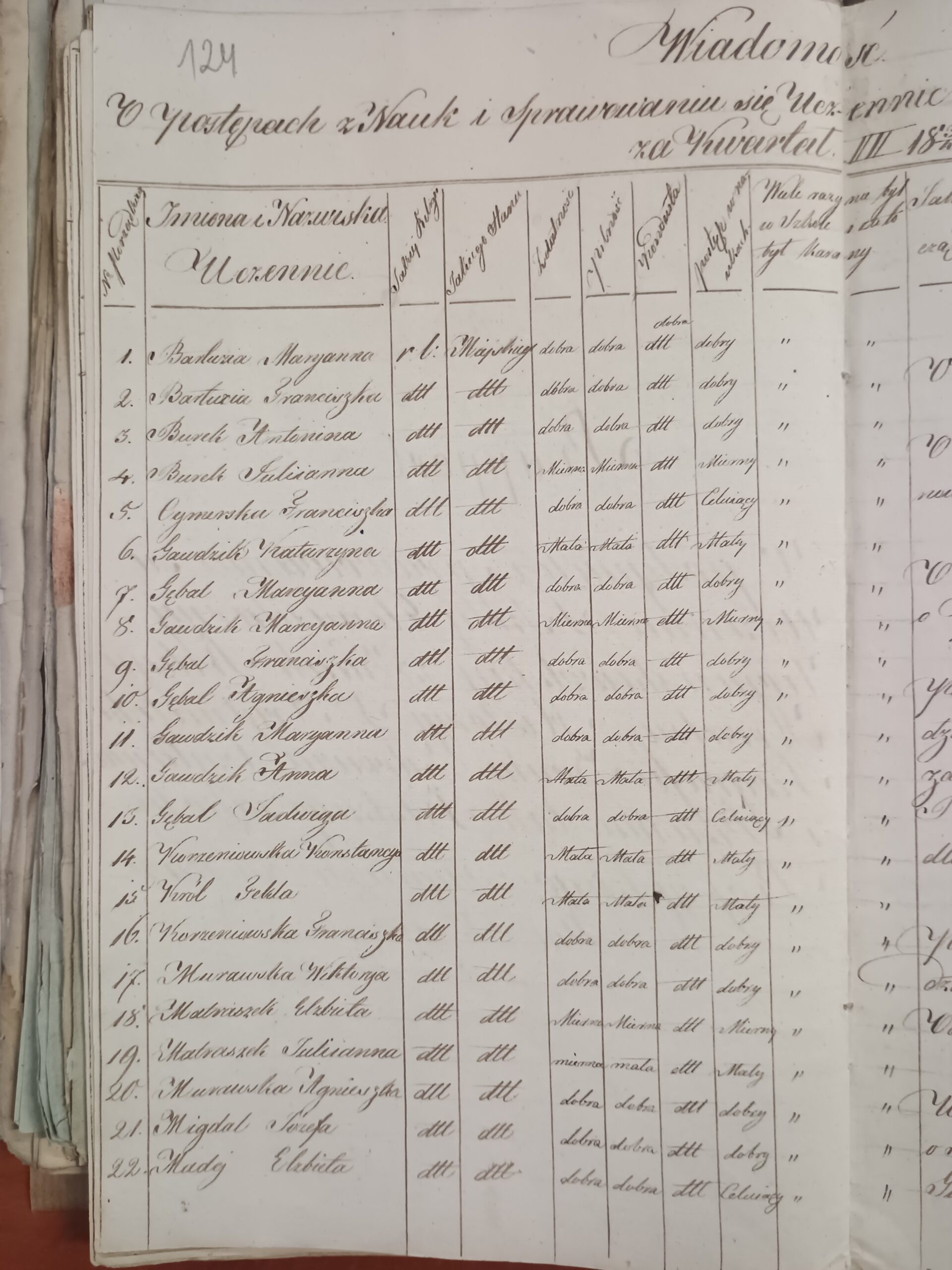 | Wiejak Mateusz | III kwartał 1855/1856 | 9 | miejski | |||||