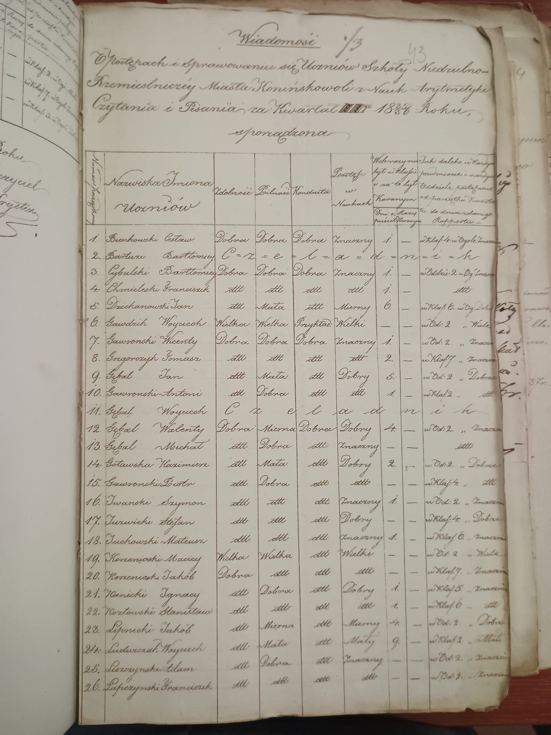 | Zadura Andrzej | I, II i III kwartał 1836/1837 | w III kwartale 1836/1837 przestał chodzić | ||||||