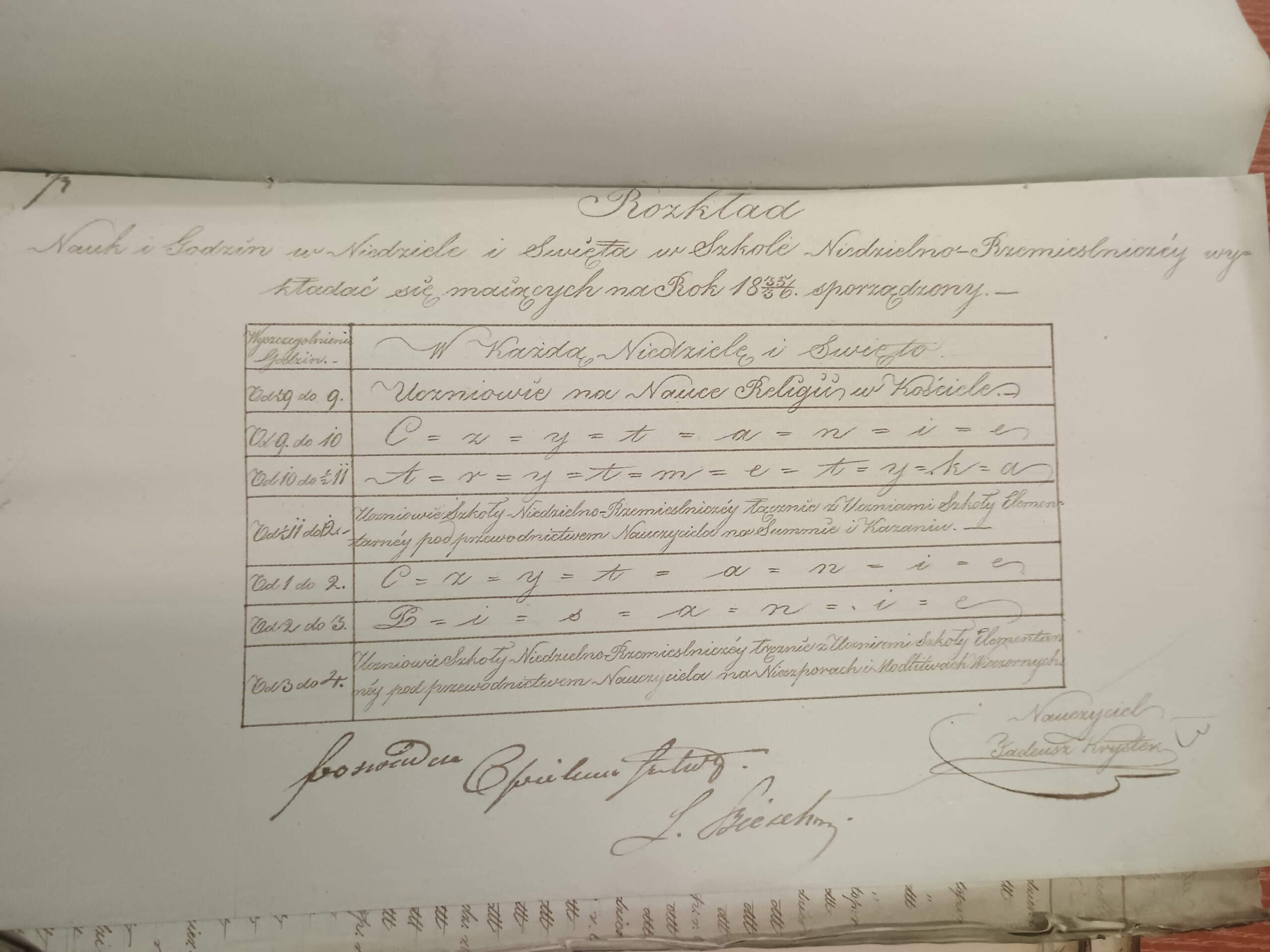 | Welkier Franciszek | I, II i III kwartał 1836/1837; I kwartał 1838/1839 | |||||||