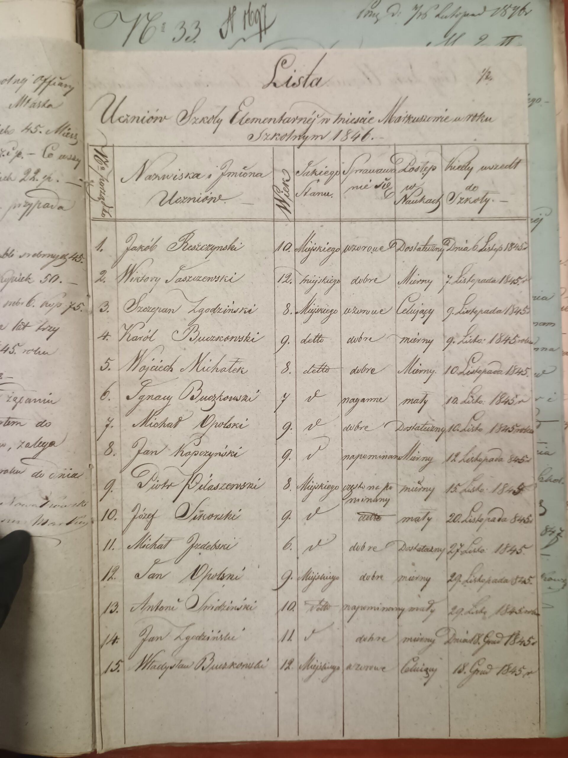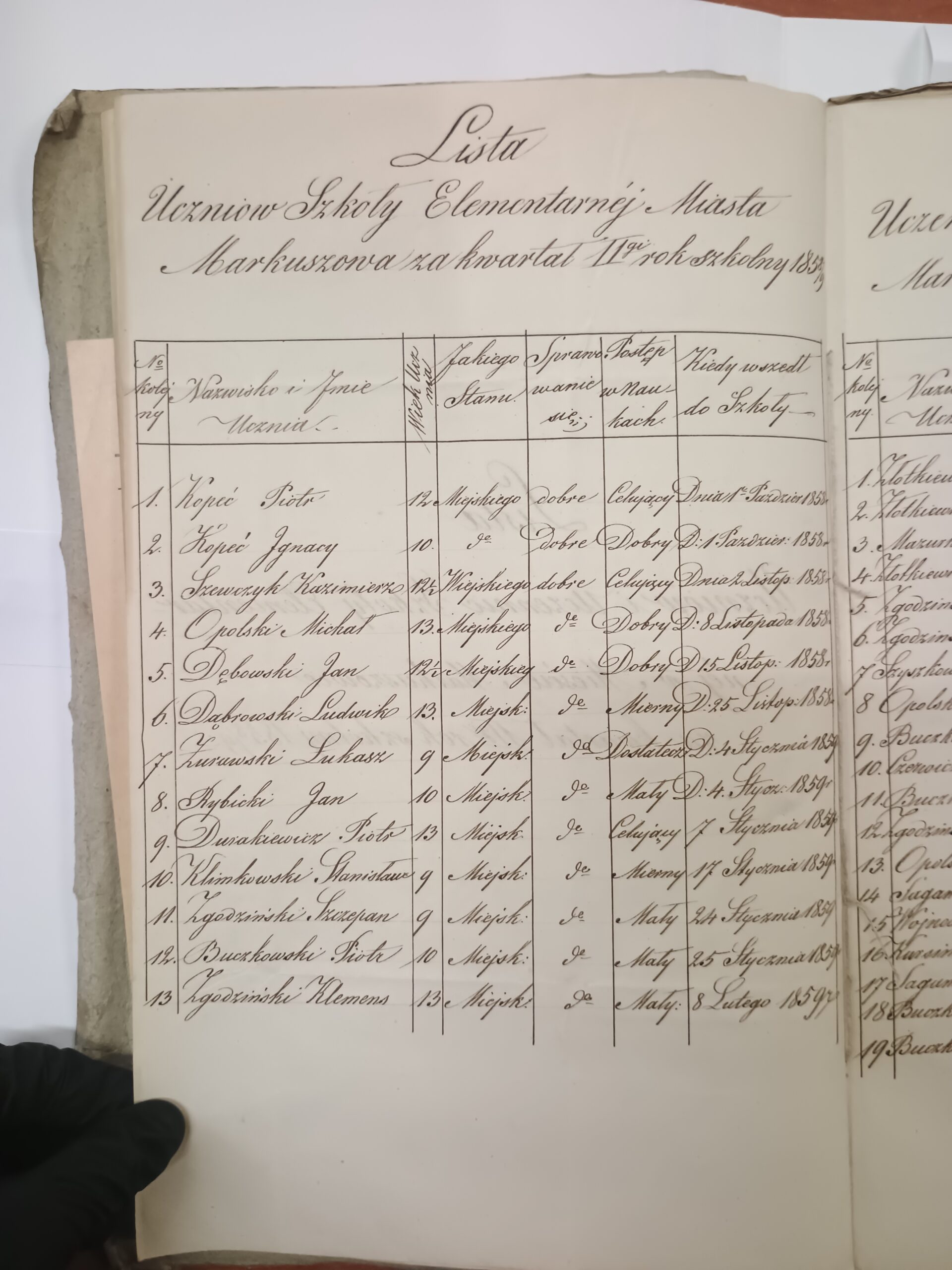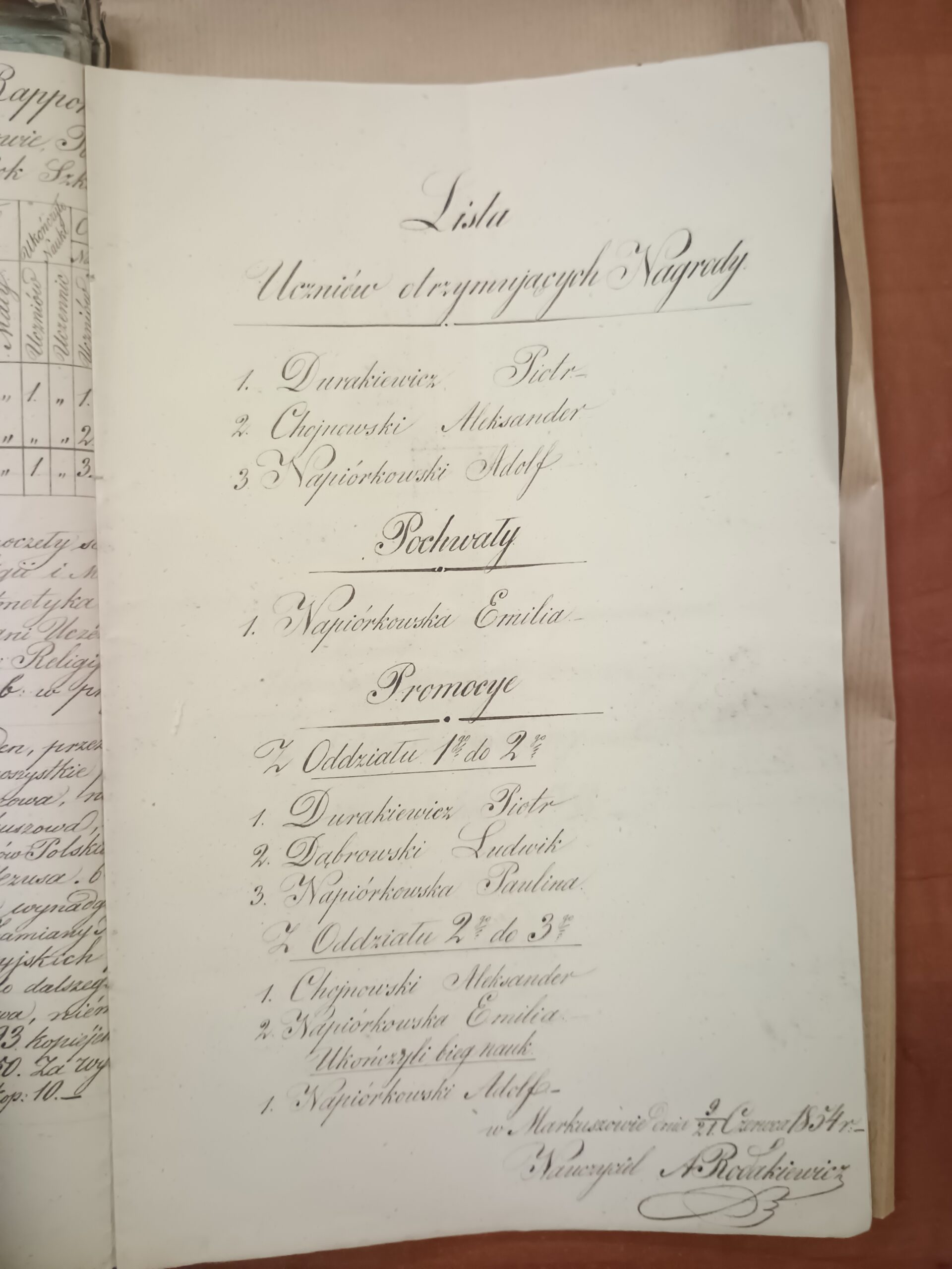 Dąbrowski LudwikIV kwartał 1853/1854miejskipromocja z oddziału I do II (VI 1854)