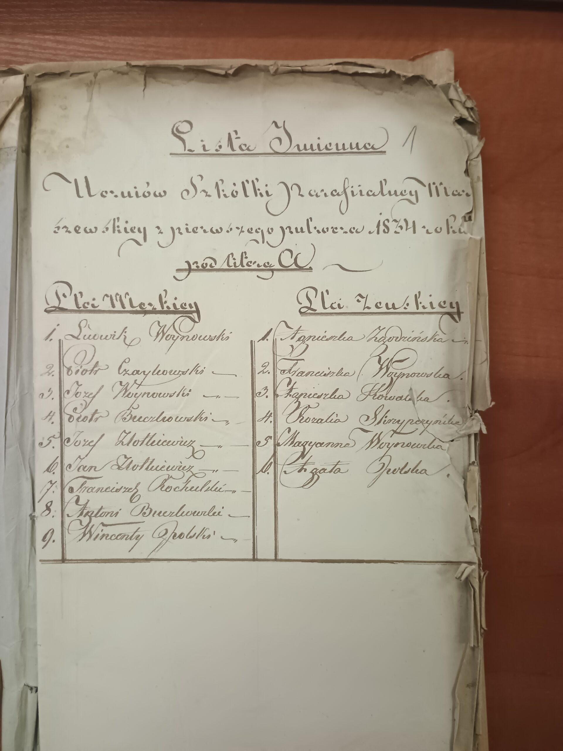 Wśród listów uczniów zachował się jeden z grudnia 1840 r., w którym obok danych o uczniach podano imiona i nazwiska ich rodziców.